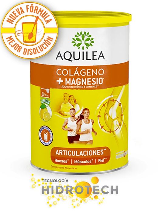 Aquilea Articulaciones Colágeno+Magnesio contiene Colágeno, Ácido hialurónico, Magnesio y Vitamina C que contribuye a la normal formación del colágeno para el funcionamiento normal del cartílago, lo que contribuye al bienestar de las articulaciones.
