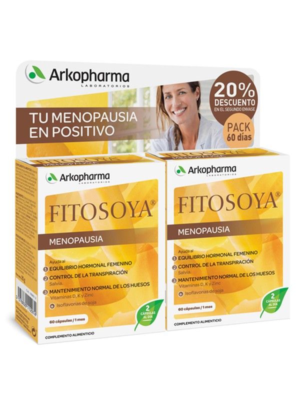 Complemento alimenticio a base de Isoflavonas de Soja, extracto de Salvia, Vitaminas D, E, K, Hierro y Zinc. La fórmula de Fitosoya asocia las isoflavonas de soja al extracto de salvia, que ayuda al equilibrio hormonal de la mujer, al zinc y las vitaminas D y K que contribuyen al mantenimiento normal de los huesos.