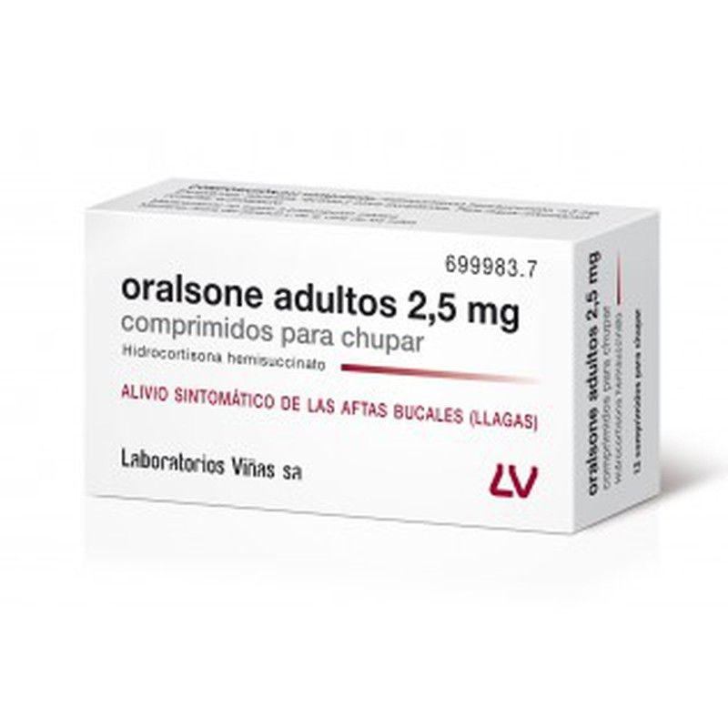Es un medicamento que contiene como principio activo hidrocortisona hemisuccinato, que es un corticosteroide de baja potencia con actividad antiinflamatoria, y se usa en la boca disolviéndose lentamente. Oralsone adultos está indicado para el alivio sintomático de las aftas bucales (llagas) en adultos mayores de 12 años.