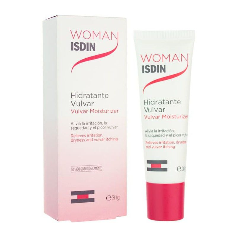 Tubo 30 g Hidrata y alivia el picor vulvar. WOMAN ISDIN® Hidratante Vulvar es un producto específico para el cuidado, protección e hidratación del epitelio vulvar. Está recomendado para aliviar los signos de picor consecuencia de irritación o sequedad.